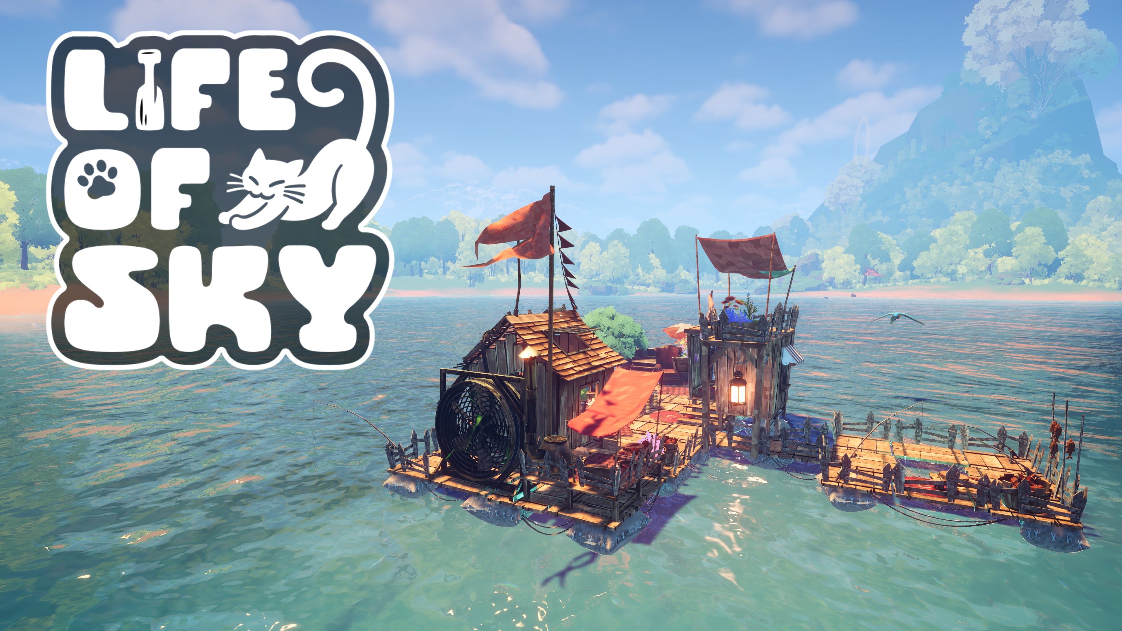 Drift through a water-covered world as Sky the cat.